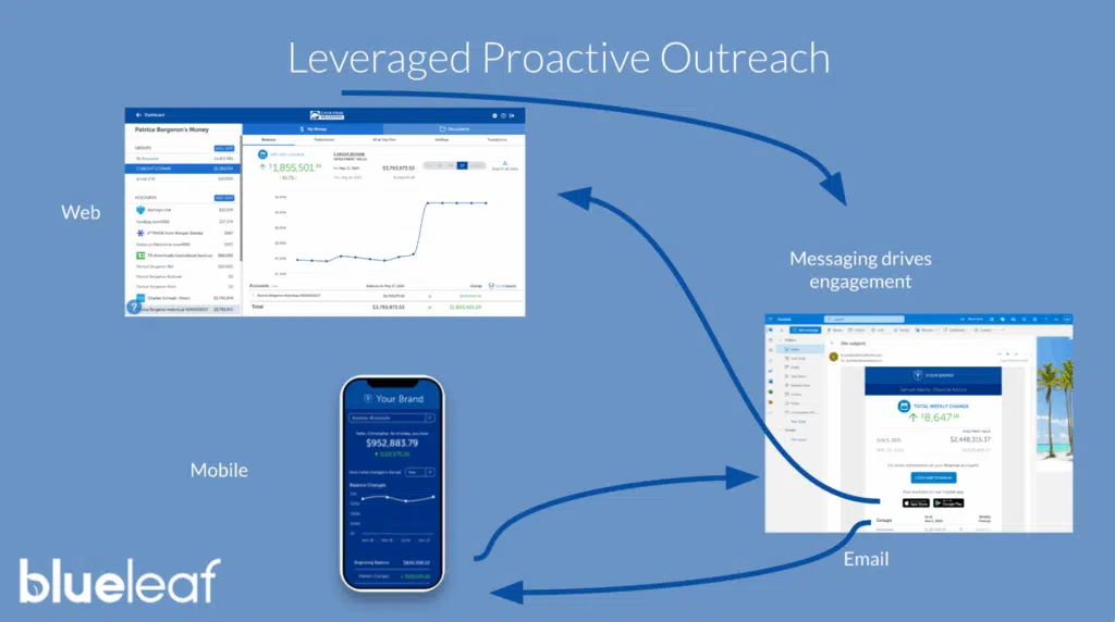 Blueleaf Engage changes that dynamic by giving you the tools to become consistently present in your clients’ financial lives.