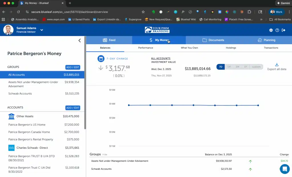 Platform Independence: Here’s what makes this practical: Blueleaf Engage works alongside your existing wealth management platform, whether that’s Orion, BlackDiamond, Addepar, or any other system. You don’t have to rip out your operational infrastructure to deliver a revolutionary client experience. You can start engaging clients tomorrow, regardless of your current tech stack.