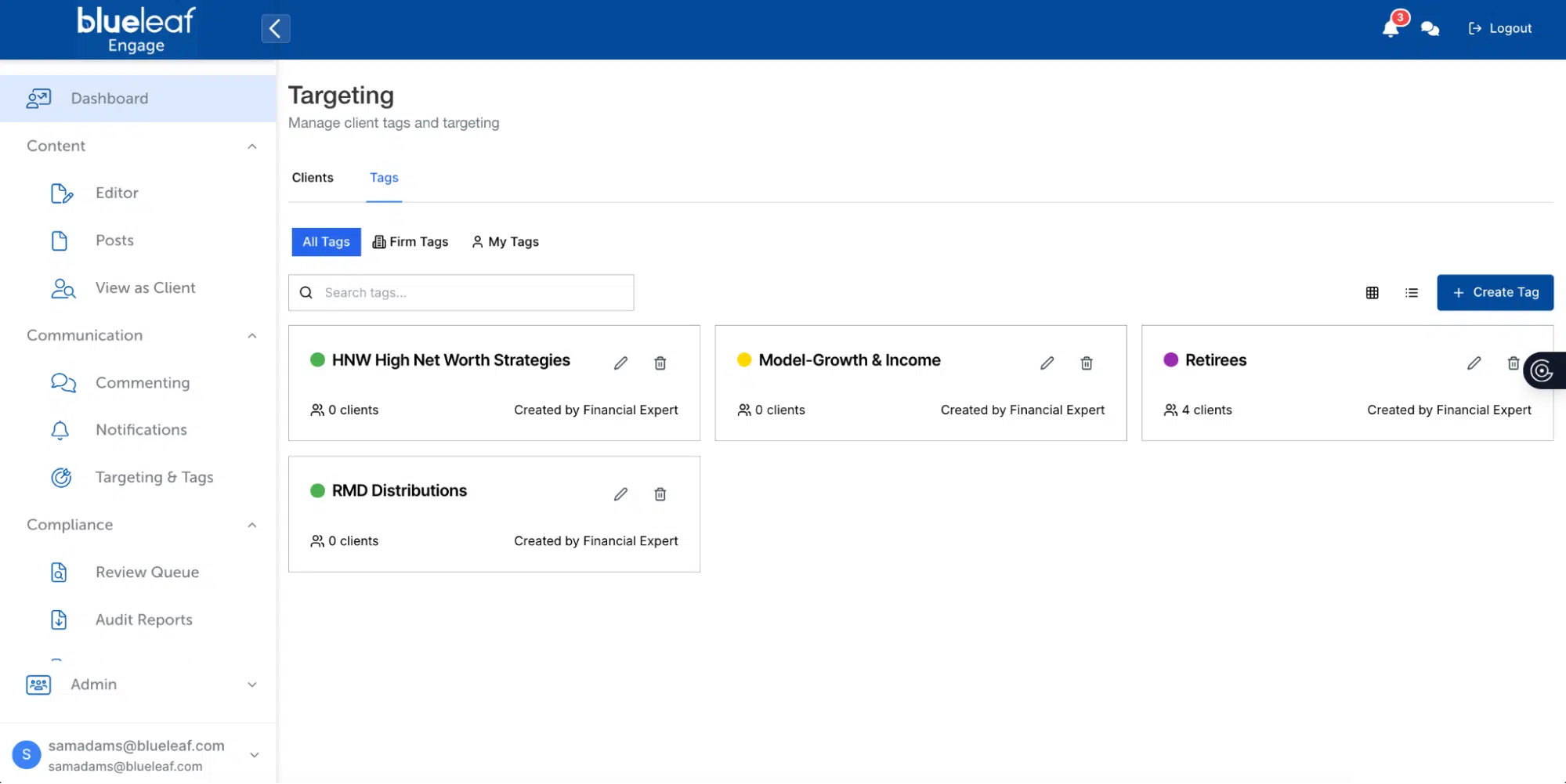 You create content once. Use tags to target the right audience—maybe it’s clients tagged with “retirement planning,” or “high net worth,” or “business owners.” Click distribute. The right people get it through their preferred channel.